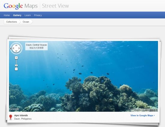 用戶可以訪問(wèn)maps.google.com/ocean查看這些圖片