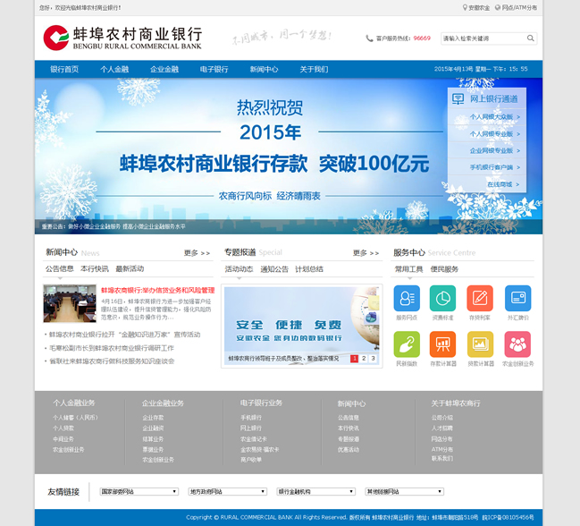 蚌埠農商行是蚌埠市區(qū)唯一的具有獨立法人資格的股份制商業(yè)銀行,實行董事會領導下的行長負責制,實行“一級法人、統(tǒng)一核算,分級管理,授權經營”的管理體制。全行現有員工397人,下轄一個營業(yè)部、11個支行、37個分理處,網點遍布蚌埠市城區(qū)和鄉(xiāng)鎮(zhèn)?偛吭O有12個職能部門。截至2014年3月底,各項存款100.82億元,各項貸款58.84億元。